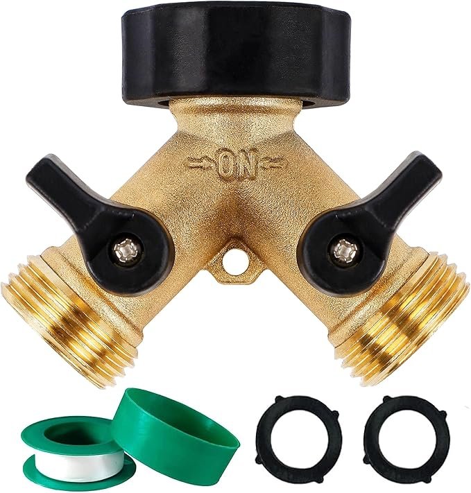 Biswing Garden Hose Splitter 2 Way, Heavy Duty Brass Connector Tap Splitter, Y Splitter 2 Valves with 2 Extra Rubber Washers